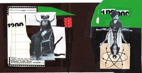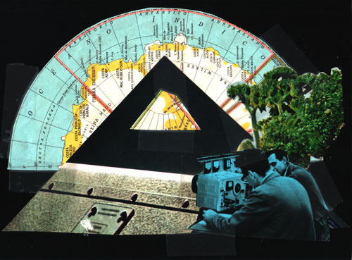 Collage Voyage: Fitacola collages (also see http://fitacola.com/category/folio ) are made of scissor cuts and adhesive tape reassemblings from original paper stuff we've been acquiring through these years... having reached a point of almost endless supplies, the process is quite simple... assemble by having fun.