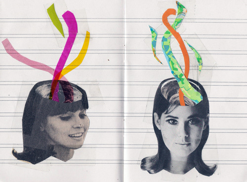 2012, and a new batch of handmade collage from our collection of vintage magazines, books, papers and scraps. All physical materials used, all fun.